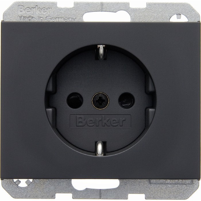 Розетка Berker, скрытый монтаж, с заземлением, со шторками, антрацит матовый, 47357006